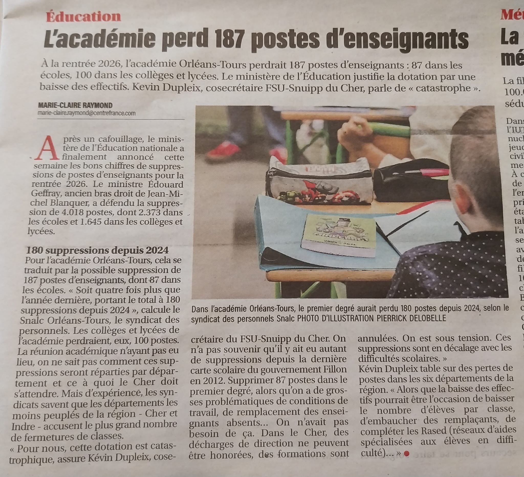 Revue de presse SNALC Orléans-Tours